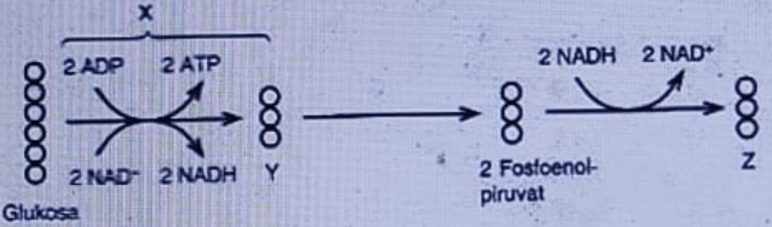 Proses dan senyawa-senyawa yang ditunjukkan oleh X, Y, dan Z berturut-turut adalah ....