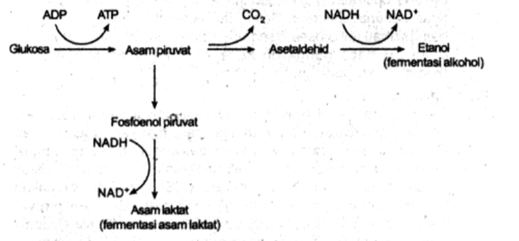 fosfoenol piruvat, aseltadehid, dan etanol