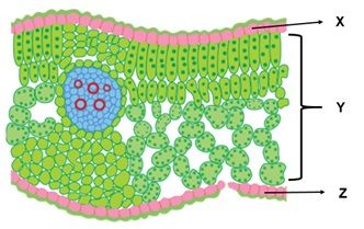 Perhatikan struktur anatomi daun dikotil berikut ini!