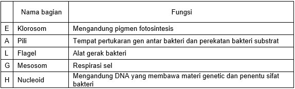 Bagian bakteri berdasarkan gambar dan fungsinya yang tepat adalah ….