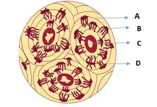 Bagian kanalikuli, saluran havers dan osteosit secara berurutan ditunjukkan oleh huruf….