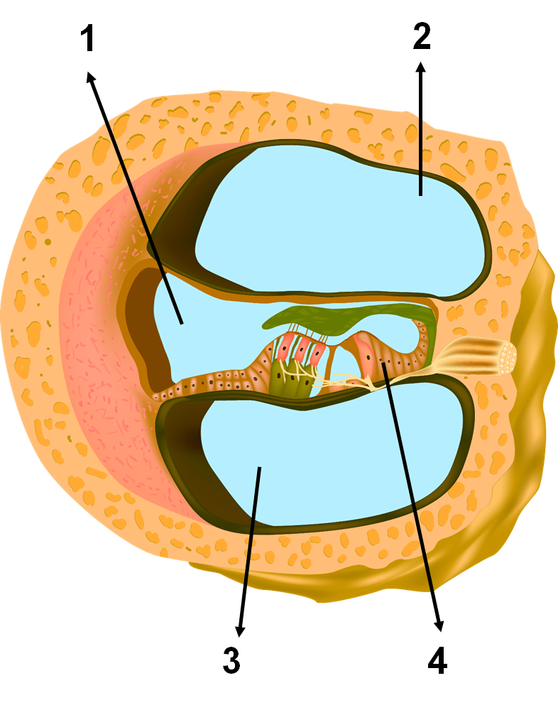 Skala timpani, skala vestibuli, organ korti, dan skala media