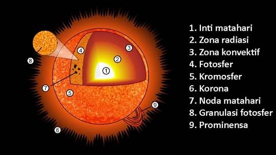 Bagian dari Matahari yang ditunjukkan oleh nomor 2 dan nomor 3 adalah ....