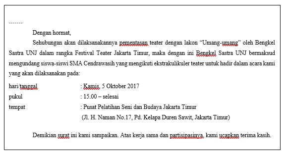 Kepada Yth. Bapak Kepala SMA Cendrawasih
