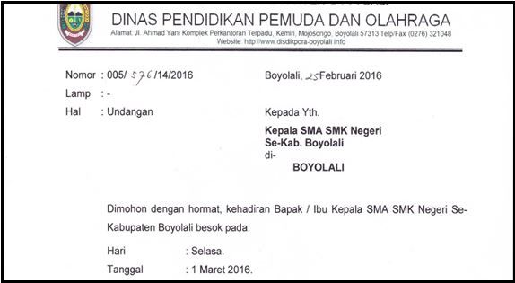 Berdasarkan surat undangan resmi tersebut, terdapat struktur yang paling membedakan antara surat undangan resmi dan surat undangan pribadi, yaitu ...