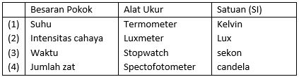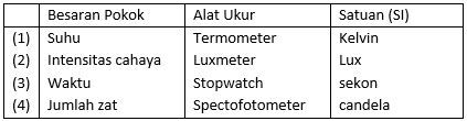Alat ukur dan satuan SI besaran pokok yang tepat ditunjukkan oleh angka ….