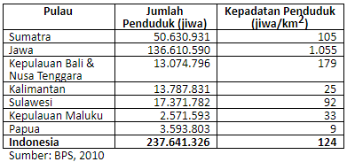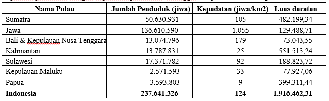 Berdasarkan tabel di atas, pulau dengan daratan paling luas adalah....