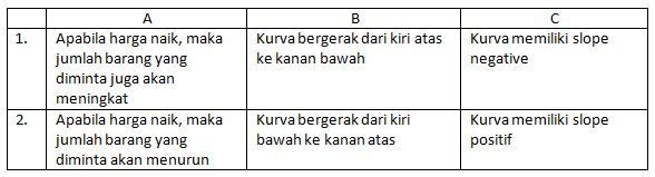 Berdasarkan tabel tersebut, pernyataan yang benar mengenai hubungan tingkat harga dengan permintaan adalah ….