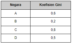 Berdasarkan tabel tersebut, urutan negara dengan tingkat pemerataan pendapatan dari yang tidak merata sampai merata adalah ....