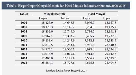 Dari tabel di atas, apakah penyebab yang paling mungkin atas terjadinya kecenderungan kenaikan impor hasil minyak dan penurunan ekspor hasil minyak?
