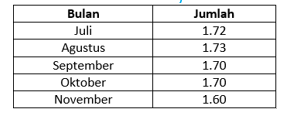 Dari tabel di atas dapat disimpulkan bahwa pengurangan jumlah konsumsi tertinggi terjadi pada bulan....