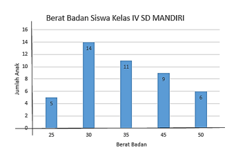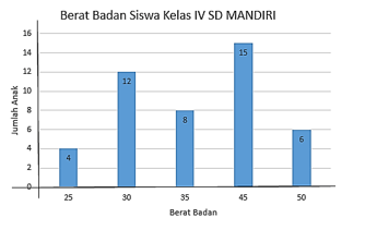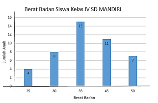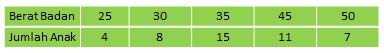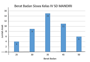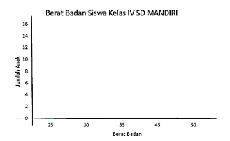 Data pada tabel di atas adalah berat badan siswa kelas IV SD MANDIRI, bentuk diagram batang yang sesuai dengan data tersebut adalah …