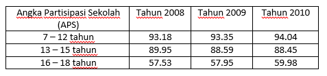 Angka partisipasi sekolah dari tahun ke tahun stabil