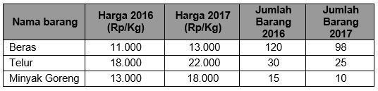 Perhatikan tabel berikut ini!