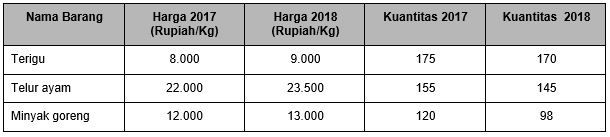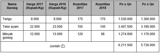 Berdasarkan tabel tersebut, nilai indeks harga pada tahun 2018 dengan menggunakan metode Paasche adalah ….