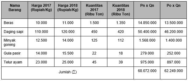 Berdasarkan tabel tersebut, nilai indeks harga pada tahun 2018 dengan menggunakan metode Paasche adalah ….