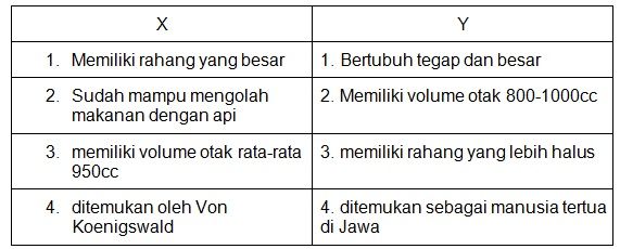Dari data diatas yang termasuk dalam ciri-ciri Meganthropus paleojavanicus adalah ….