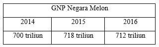 Dari tabel tersebut besarnya laju pertumbuhan ekonomi negara Melon tahun 2016 adalah ….