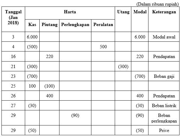 aktiva = Rp5.550.000,00, utang Rp300.000,00, dan pasiva Rp5.550.000,00
