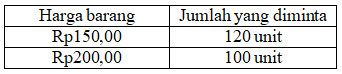 Fungsi permintaan yang tepat berdasarkan tabel di atas adalah ....