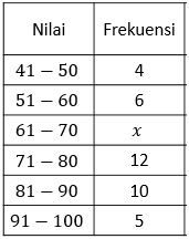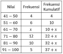 Jika nilai persentil ke-32 dari data di atas adalah 65,12, maka nilai