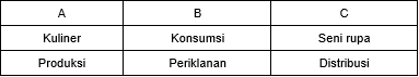 Manakah pada tabel diatas yang termasuk lingkup ekonomi kreatif ….