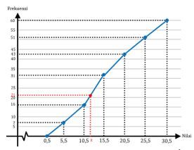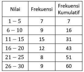 Nilai persentil ke-35 dari data di atas adalah ....