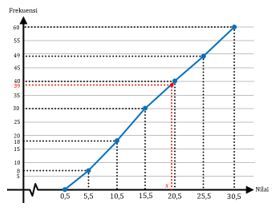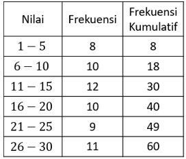 Nilai persentil ke-65 dari data di atas adalah ...