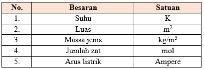 Pasangan besaran pokok dan satuan internasionalnya yang sesuai adalah…