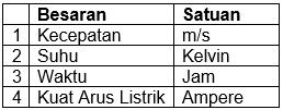 Pasangan besaran pokok dan satuannya yang benar menurut Sistem Internasional ditunjukkan oleh kolom nomor ….