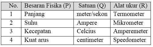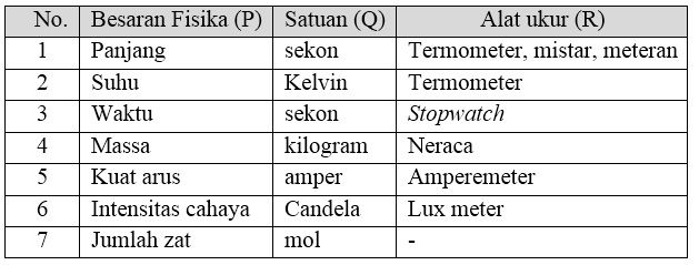 Pasangan besaran pokok, satuan dalam Sistem Internasional (SI), dan alat ukur berikut yang sesuai adalah ....