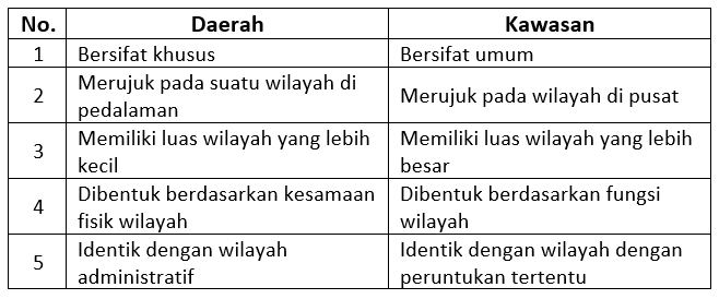 Perbedaan antara daerah dengan kawasan yang tepat ditunjukkan oleh nomor .…