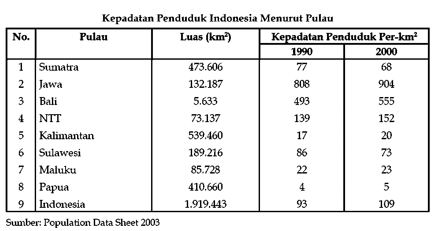 Kepadatan penduduk Indonesia mengalami penurunan kepadatan penduduk tiap tahun
