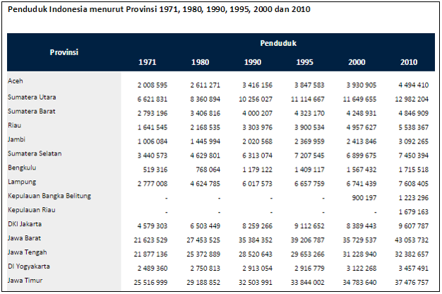Pada tahun 1971 jumlah penduduk paling tinggi berada di Provinsi Jawa timur dan yang terendah di Kepulauan Riau.