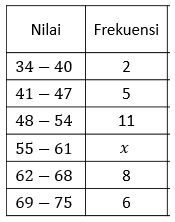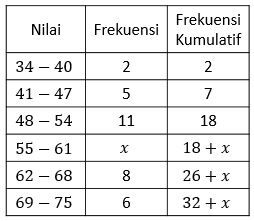 Jika modus dari data di atas adalah 52,1, maka nilai