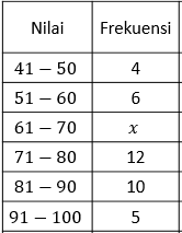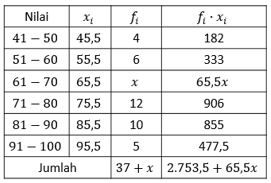 Jika rata-rata dari data di atas adalah 72,1, maka nilai