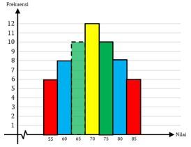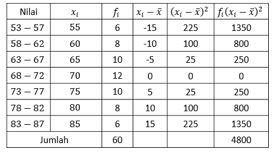 Jika rata-rata, median, dan modus dari data di atas sama, maka simpangan bakunya adalah ....