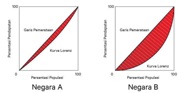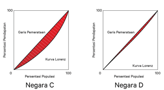 negara yang memiliki tingkat ketimpangan pendapatan paling tinggi adalah negara A dan D