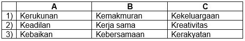 Nilai-nilai dasar perekonomian, Indonesia ditunjukkan oleh pasangan ….