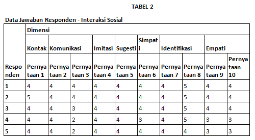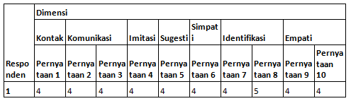 Pada bagian TABEL 2 dapat dilihat bahwa responden 1, telah mengisi kuesioner yang telah diberi kode oleh peneliti. Hal ini dapat disimpulkan bahwa....