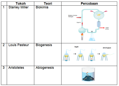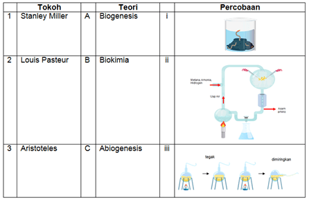 Pasangan tokoh, teori evolusi, dan percobaan yang tepat adalah....
