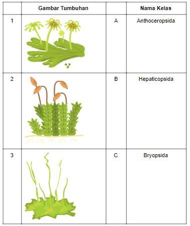 Pasangan yang tepat antara gambar tumbuhan dengan nama kelasnya yaitu…