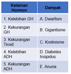 Pasangan yang tepat antara kelainan dan dampaknya adalah ….