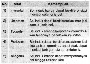 Pasangan yang tepat antara sifat stem cell beserta kemampuan yang dimilikinya ditunjukkan oleh angka ....