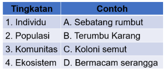 Pasangan yang tepat antara tingkatan dan contohnya adalah ….