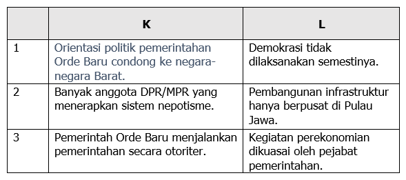 Penyimpangan politik yang terjadi pada masa Orde Baru ditunjukkan oleh kombinasi ....