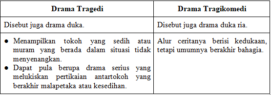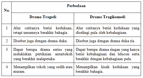 Perbedaan antara drama tragedi dengan drama tragikomedi ditunjukkan oleh nomor ….