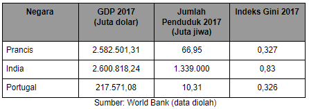 negara yang memiliki pendapatan per kapita rendah tinggi adalah Prancis dan tingkat pemerataan pendapatannya masih rendah