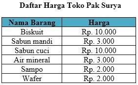 Rata-rata harga barang di toko Pak Surya adalah ....