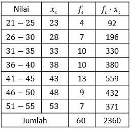 Perhatikan tabel berikut.